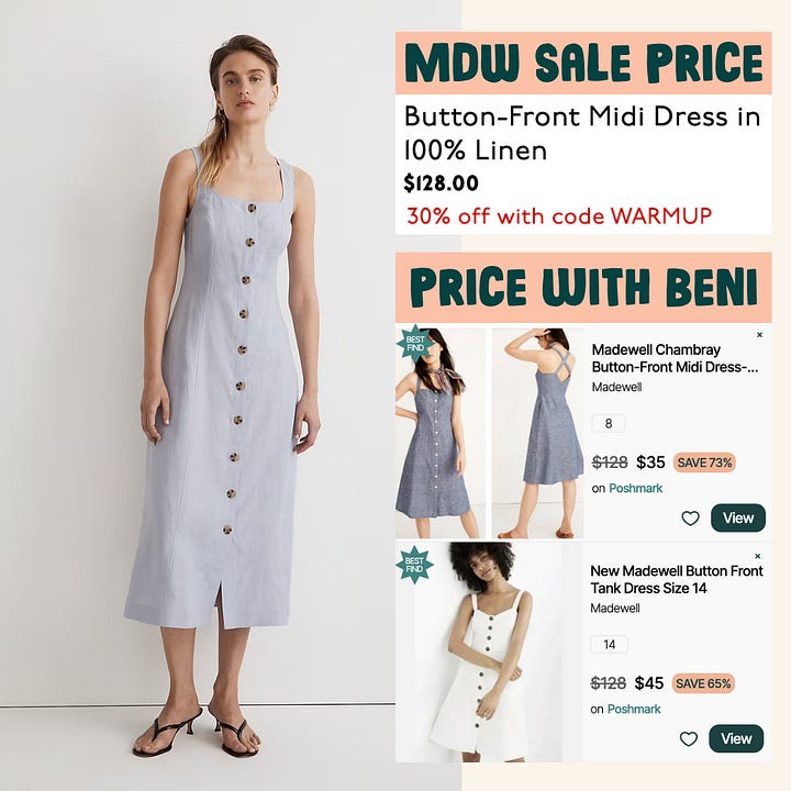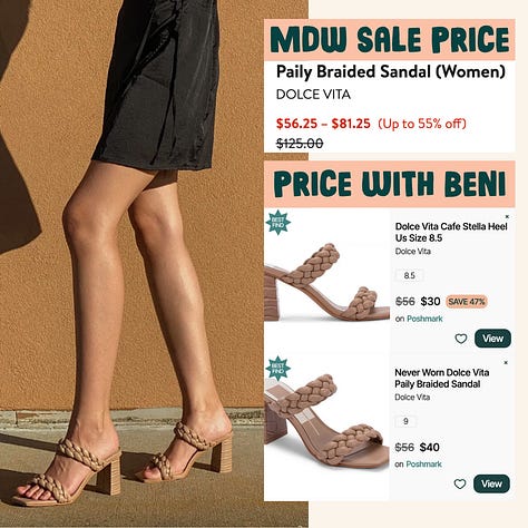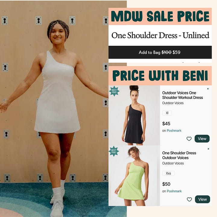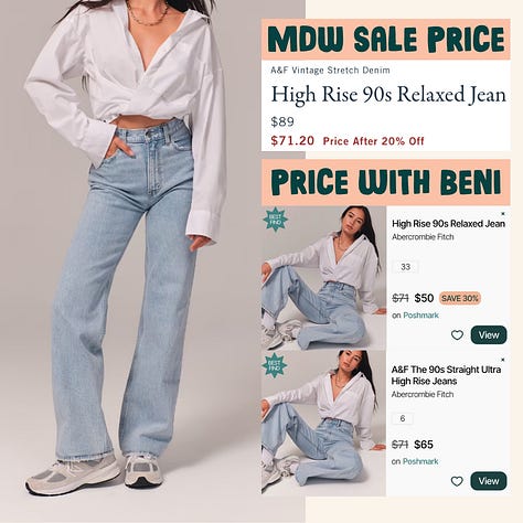 To prove it to you we looked into how prices of items found with Beni compare to MDW sale prices from stores like Saks, Abercrombie, Nordstrom, Outdoor Voices, and Madewell. I like big deals and I cannot lie…and Beni (clearly) has the best deals.