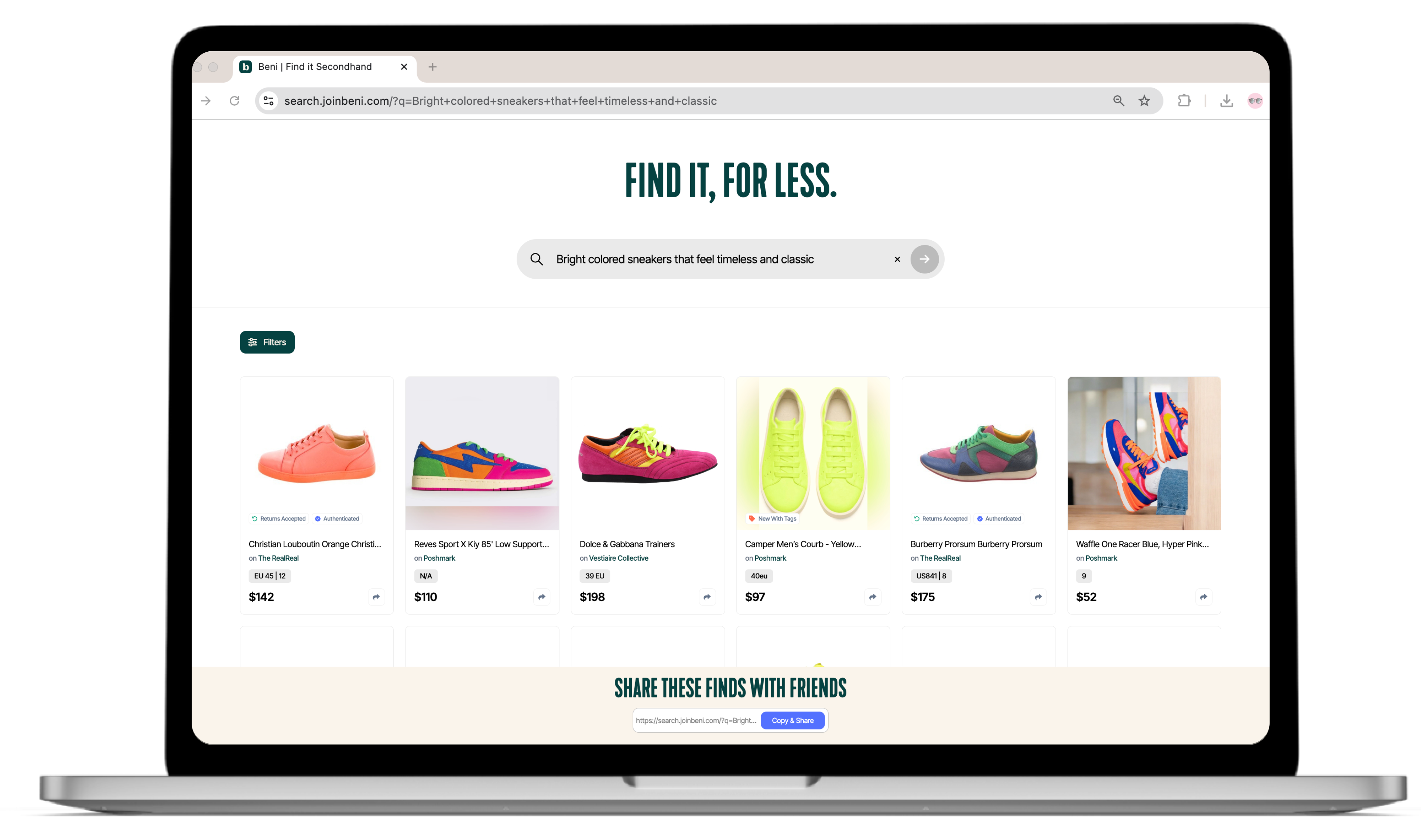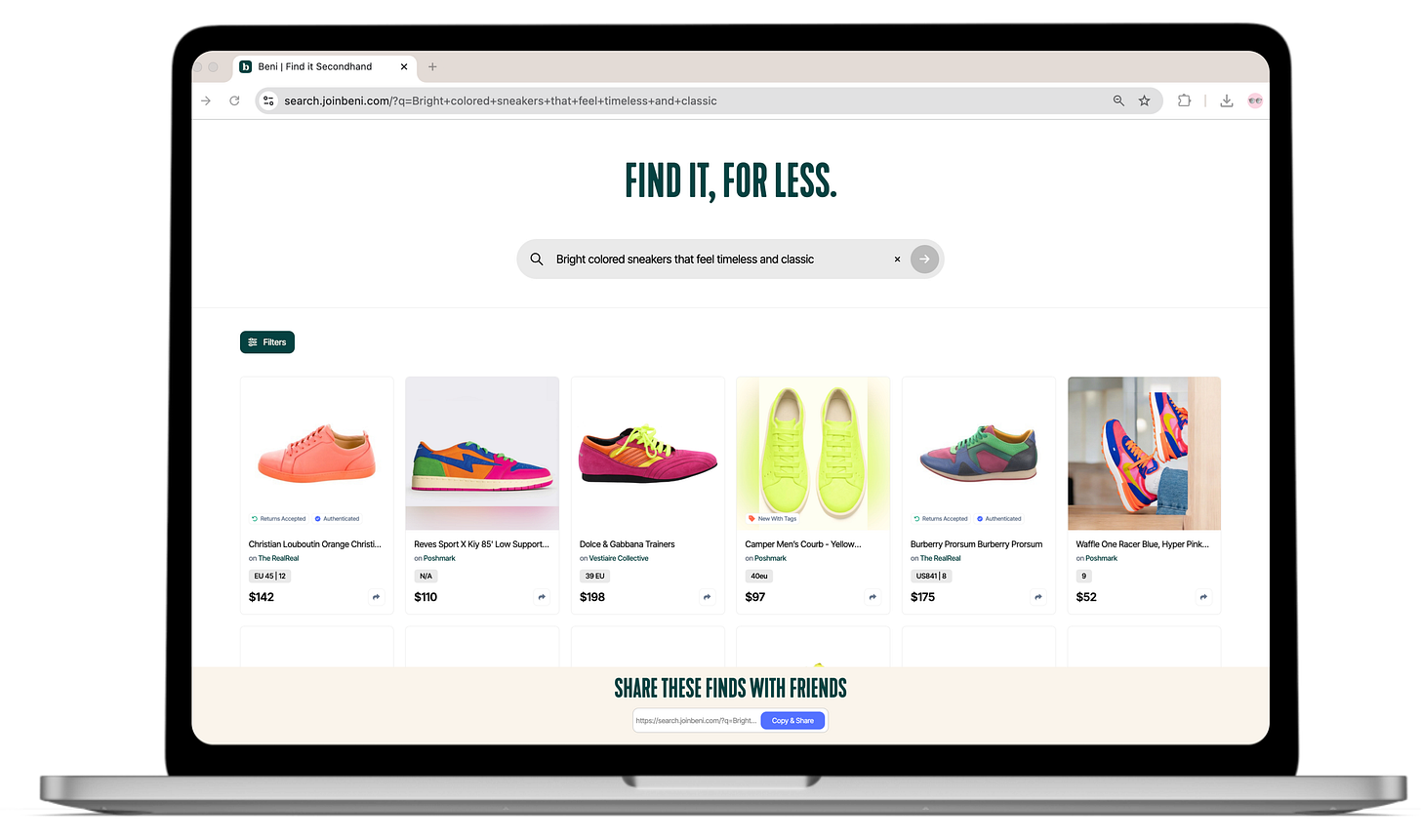 Since starting Beni, our goal has been to make resale as easy as buying new because we believe sustainable shopping should be accessible to everyone.