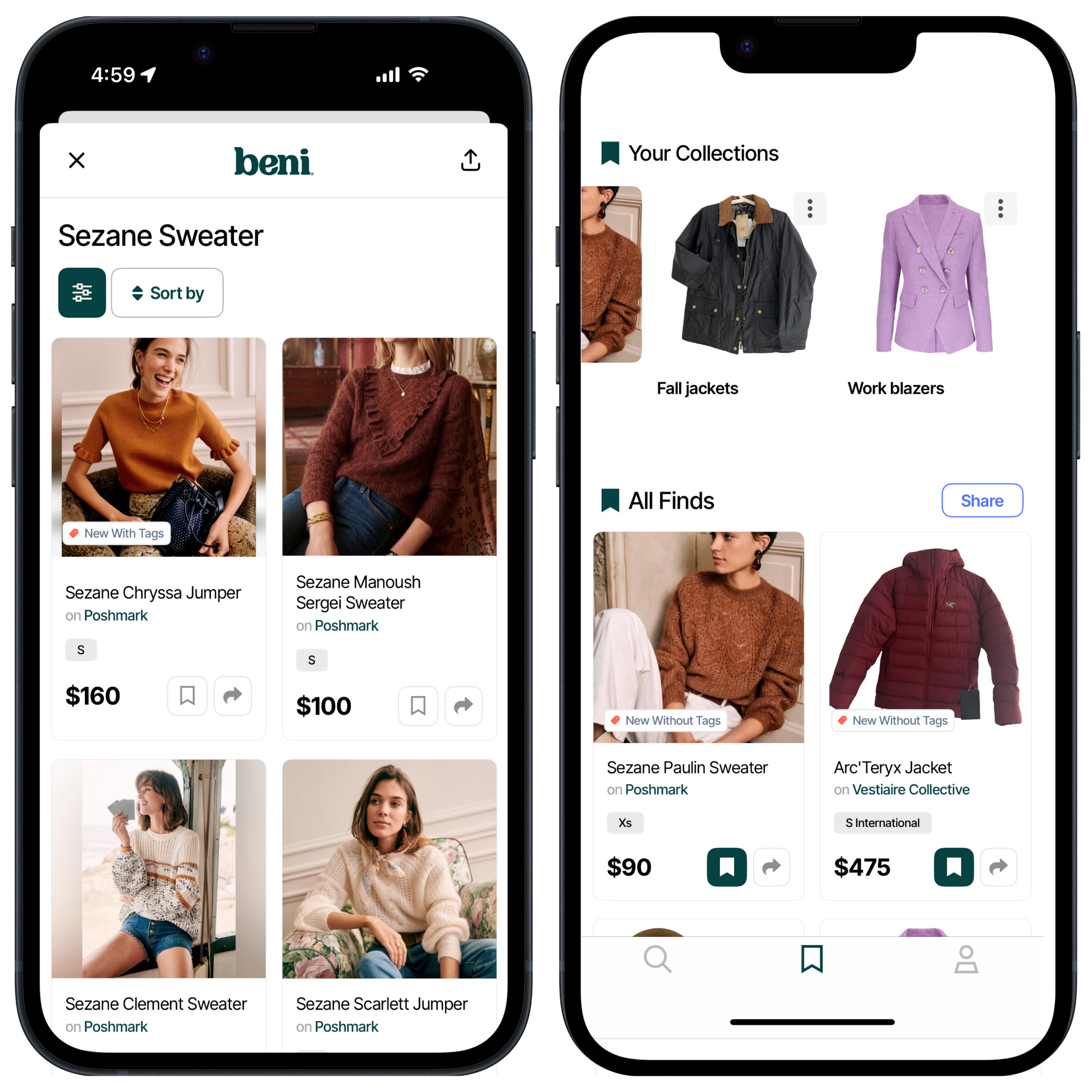Since bringing back search (!!), the Beni iOS app is like the Google-meets-Pinterest of secondhand shopping. Similar to checkbeni.com, you can search anything you want, but with the app you can also organize those finds into collections that you can come back to at any time or share with friends.
