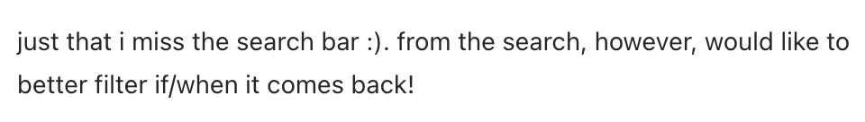 Here are just a few of the messages we received requesting that Search be added back to the app. If there’s a feature that you want to see, always share it with us because we can make it happen!