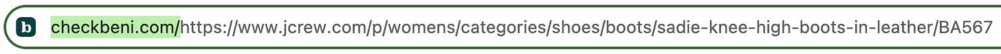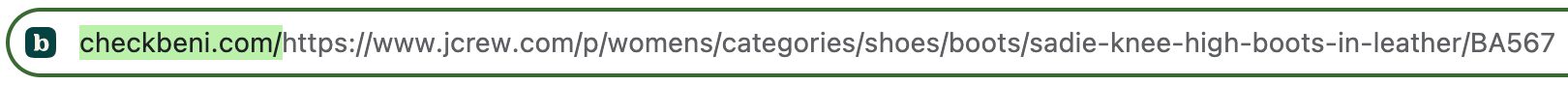 Experience the tech behind the browser extension (without the actual extension) by adding “checkbeni.com/” in front of any product URL to see pertinent results for that item.