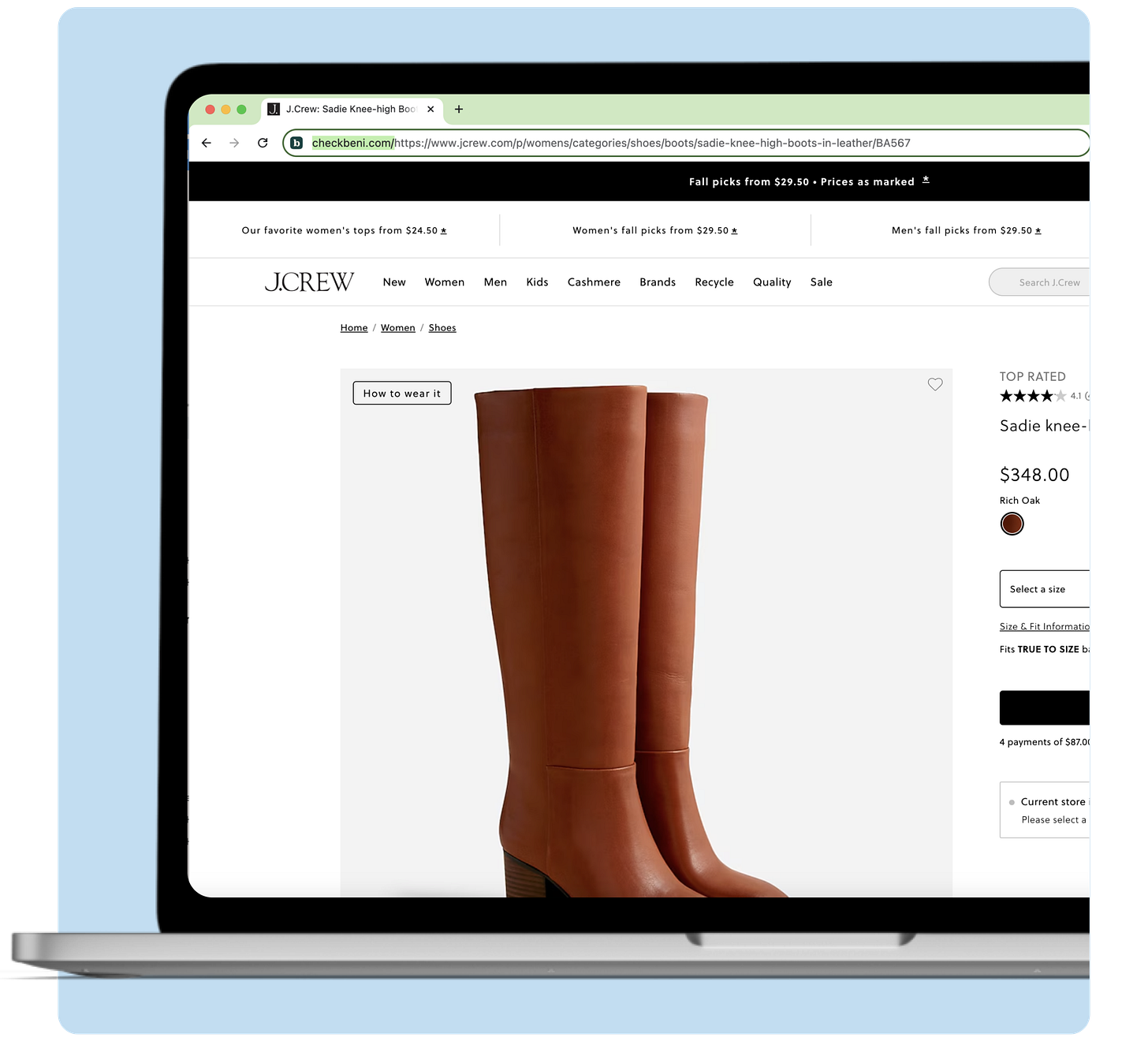 ICYMI: We launched a game-changing feature last week that lets you leverage Beni’s tech any time by adding “checkbeni.com/” in front of any product URL and hitting enter. Try it for yourself with these J. Crew boots!