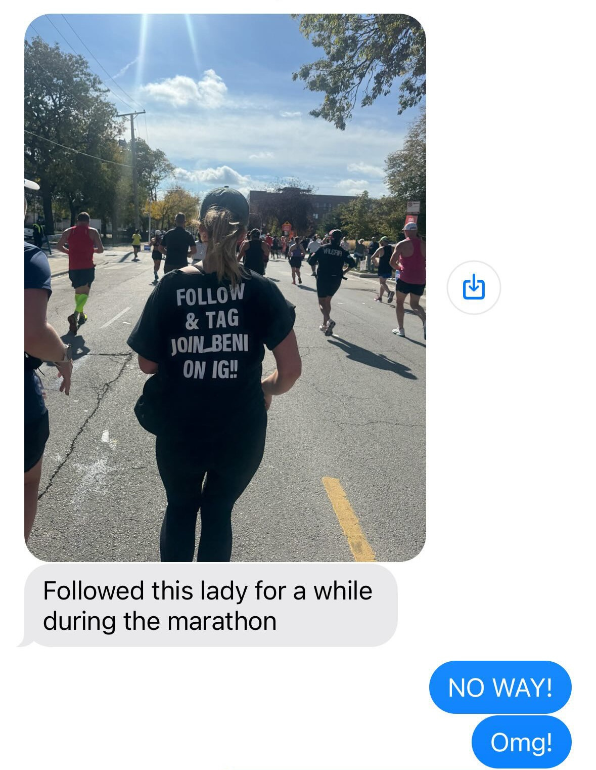 Catherine ran the Chicago marathon last weekend in an “upcycled” 😉 shirt that promoted Beni, and we received an influx of texts and pics from people who saw her out on the course!