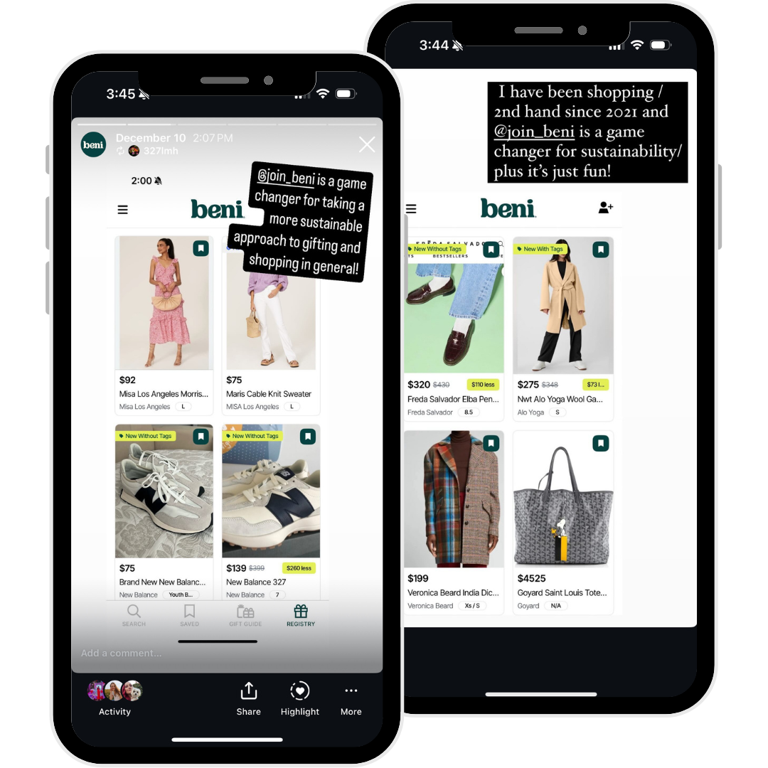 Share a screenshot of your Resale Registry to your Instagram story, tagging @join_beni.*