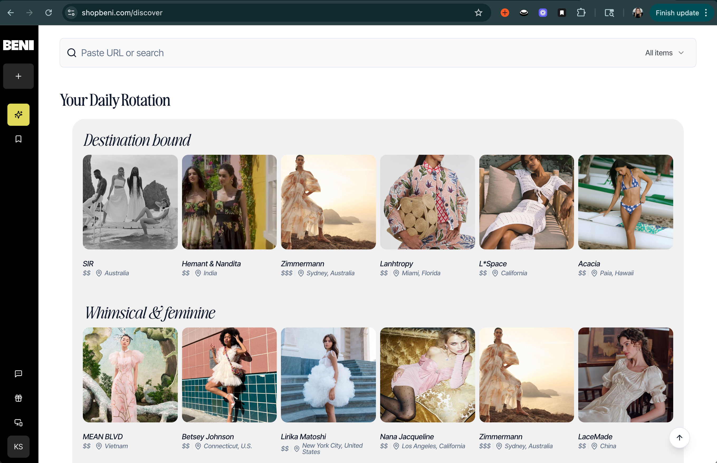 Think of shopbeni.com as your personal style hub, bringing your saves and followed brands together in one organized place.