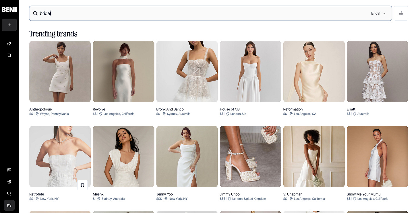 Personalized recommendations: The more you interact, the better Beni understands your style. Like Spotify, your discover tab becomes a daily drop of fresh brands and listings tailored just for you.