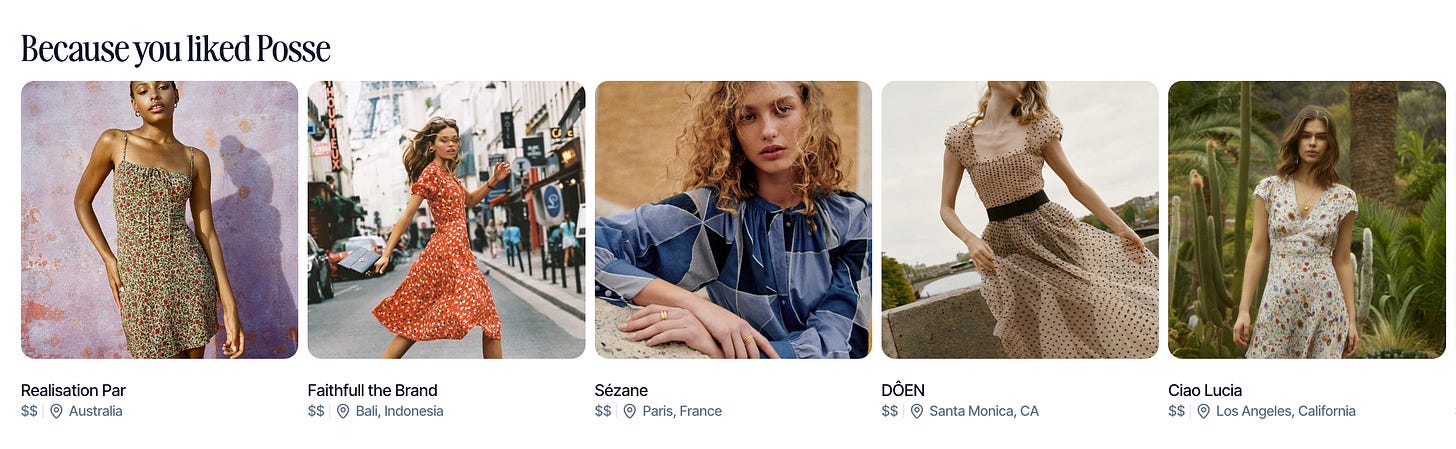 Explore new brands: Break free from repetitive algorithms with brand recommendations designed to spark new style inspiration.