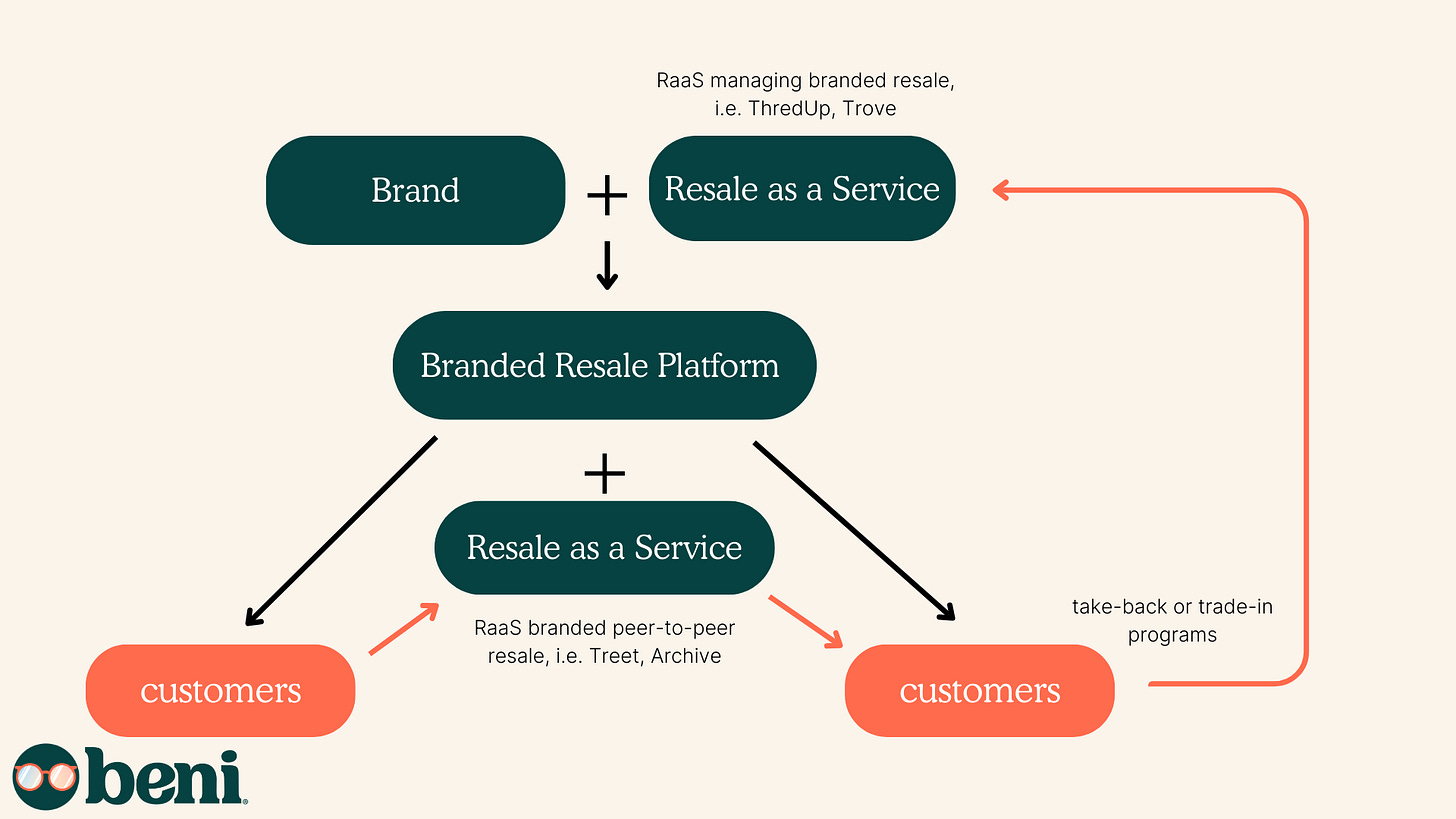 RaaS businesses provide brands with the infrastructure to integrate secondhand as a part of brands' offerings. Their existence allows brands to outsource much of the hassle and complexity that comes with resale. While each RaaS platform varies, mainly, they offer a branded resale website (the selling channel), inventory sourcing systems (and management, depending on the RaaS model), listing technology, sales management, analytics, and customer support.