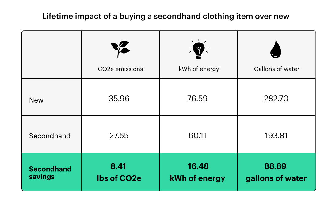 The most recent analysis shows that buying and wearing secondhand clothing instead of new reduces carbon emissions by an average of 25%: